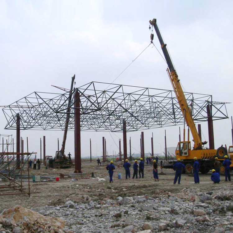 本工程鋼構(gòu)件均需工廠加工制作,然后運(yùn)輸至施工現(xiàn)場(chǎng)進(jìn)行拼裝,因此各種構(gòu)配件必須有組織、有計(jì)劃按圖紙要求分類編號(hào)、打包本工程基礎(chǔ)為鋼筋混凝土靜壓力樁獨(dú)立承臺(tái)基礎(chǔ)。結(jié)構(gòu)形式為網(wǎng)架結(jié)構(gòu)。鋼結(jié)構(gòu)制作、安裝工程精度要求高。