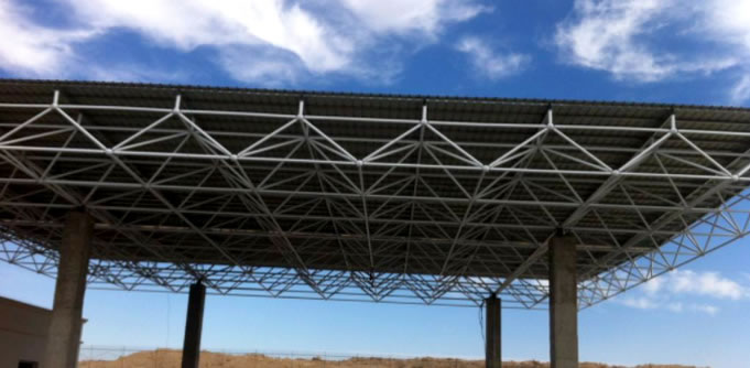 3、周邊支承的網(wǎng)架,高度偏差允許值為相鄰支座的1/400,且不應(yīng)大于15mm,***高與***低之間應(yīng)不大于30mm;
